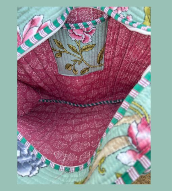 Noori Tote bag Pink Floral Pink & Blue with zip