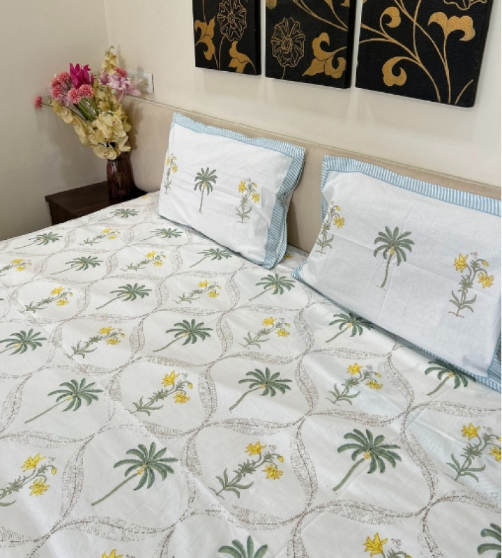 NOTE: It's a hand-block printed bedsheet all done by artisans. There might be slight irregularities in the print, motif, or colour. These are not defects, it's the nature of handicraft products.