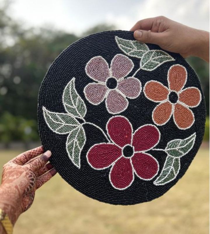 Elevate your décor with our Handcrafted Round Beaded Mat, a stunning fusion of traditional artistry and modern charm. Each mat is lovingly created by skilled Indian artisans, featuring intricate beadwork and delicate embroidery that adds a radiant sparkle to any setting. Perfect as a centerpiece, under a vase, or as a decorative accent for your table.